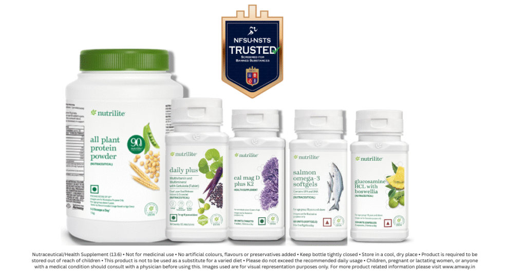 nutrition products, endorsing five key products – Nutrilite All Plant Protein, Nutrilite Cal Mag D Plus K2, Nutrilite Glucosamine HCL with Boswellia, Nutrilite Salmon Omega 3 Softgels, and Nutrilite Daily Plus to be compliant with international standards set by World Anti-Doping Agency (WADA). These